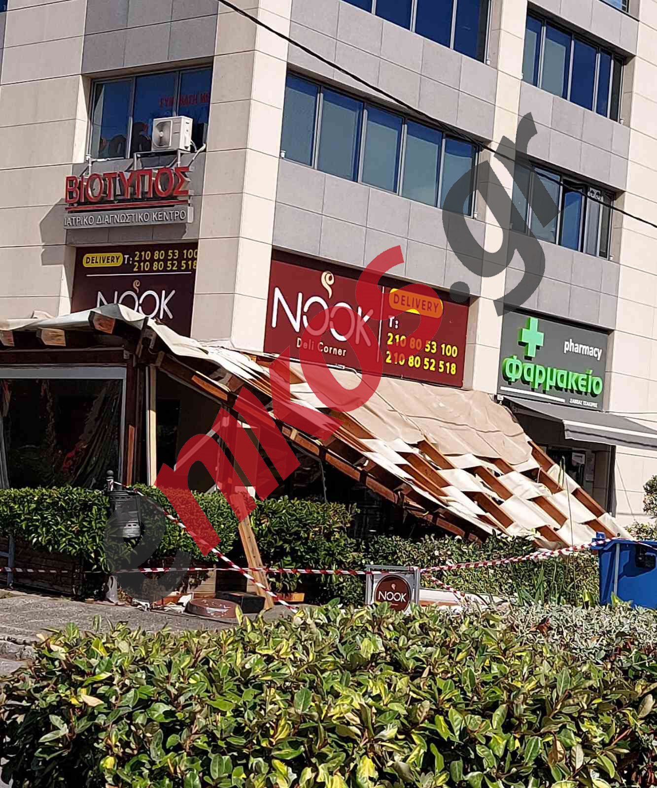Στην περιοχή της Πεύκης, από τους ισχυρούς άνεμους κατέρρευσε στέγη καφετέριας στη Λεωφόρο Ειρήνης.