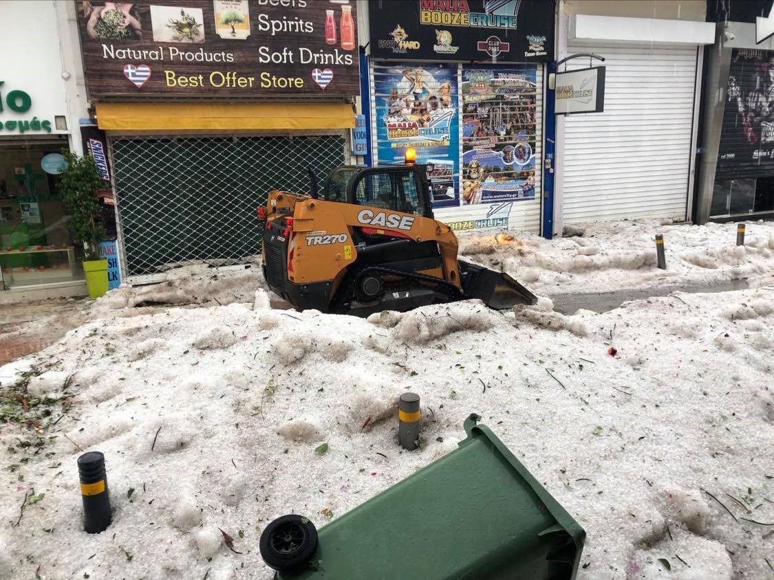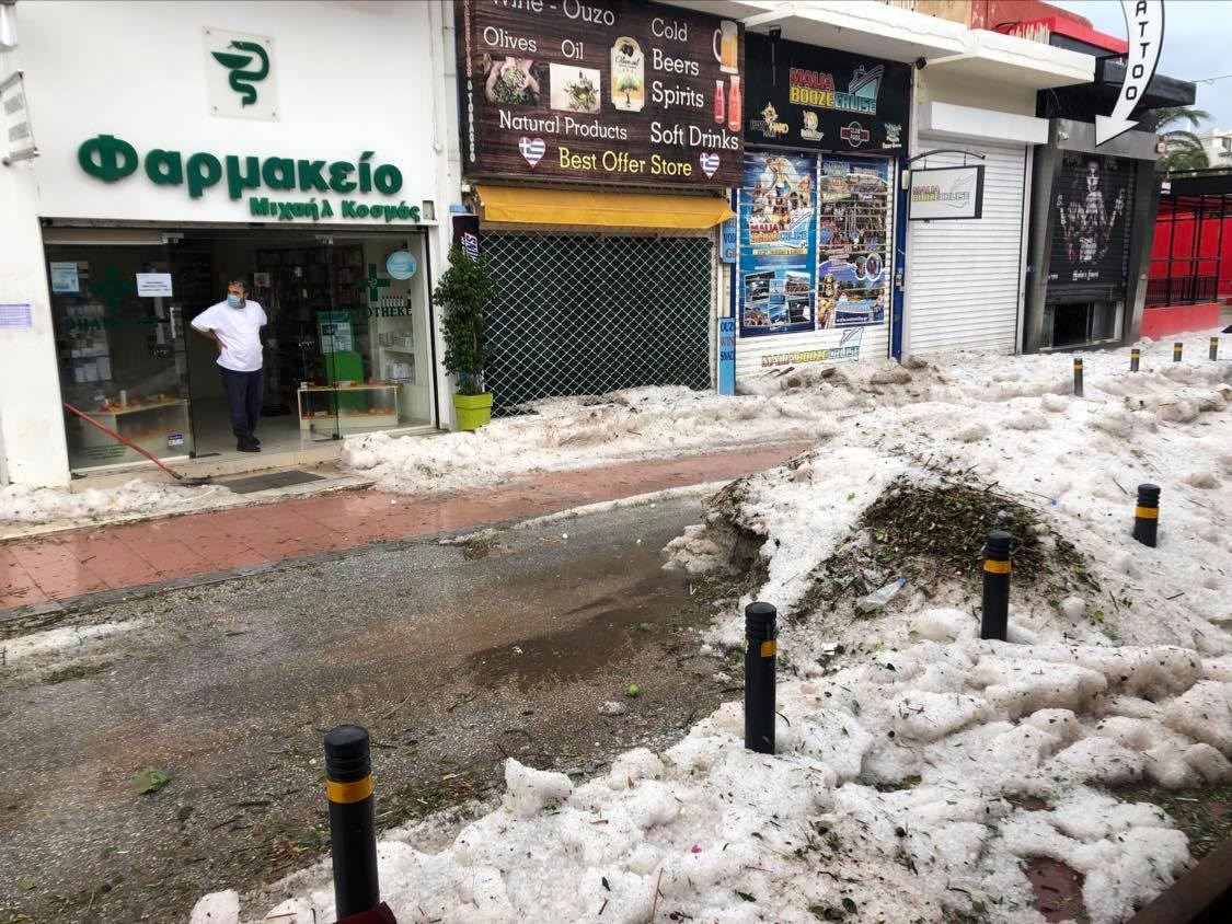 Όπως τόνισε ο ίδιος, ακόμη υπάρχουν κόκκοι χαλαζιού σαν καρύδι, κάτι που είναι πρωτοφανές για την περιοχή. Παράλληλα ο δρόμος από την εκκλησία του Αγίου Νεκταρίου προς την παραλία δεν είναι προσβάσιμος.