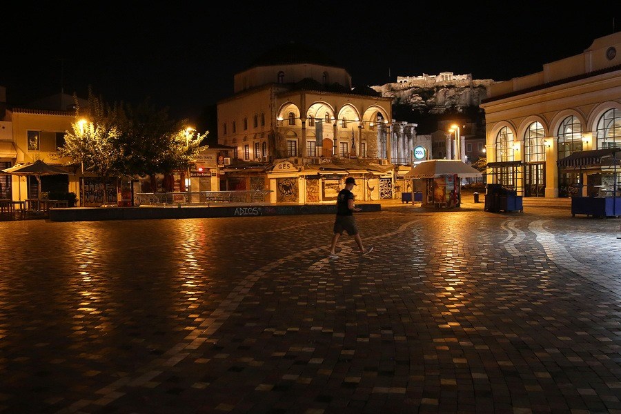 Η πλατείας Συντάγματος είναι έρημη όπως και η πλατεία στο Μοναστηράκι που άλλα βράδια ήταν γεμάτη από νεολαία.