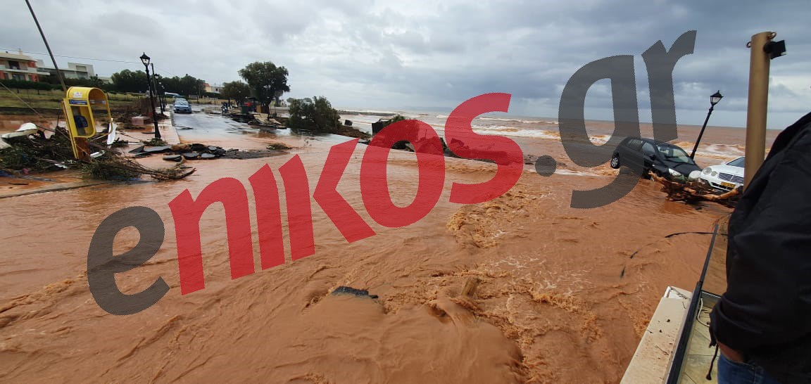 Από φωτογραφίες που έστειλε αναγνώστης του enikos.gr, φαίνεται το τεράστιο μέγεθος της καταστροφής στον Δήμο Χερσονήσου: