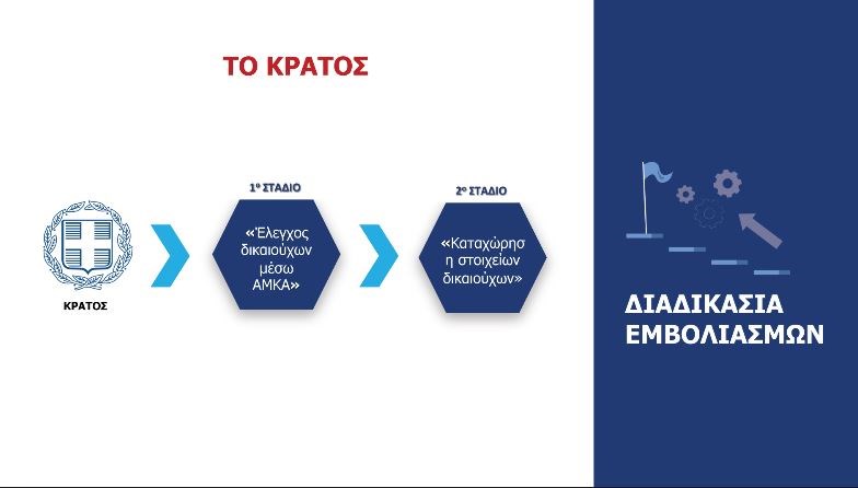 Αναφέρθηκαν στη συνέχεια τα δύο στάδια, που είναι: 1) Ο έλεγχος των δικαιούχων μέσω ΑΜΚΑ και 2) Η καταχώρηση των στοιχείων των δικαιούχων