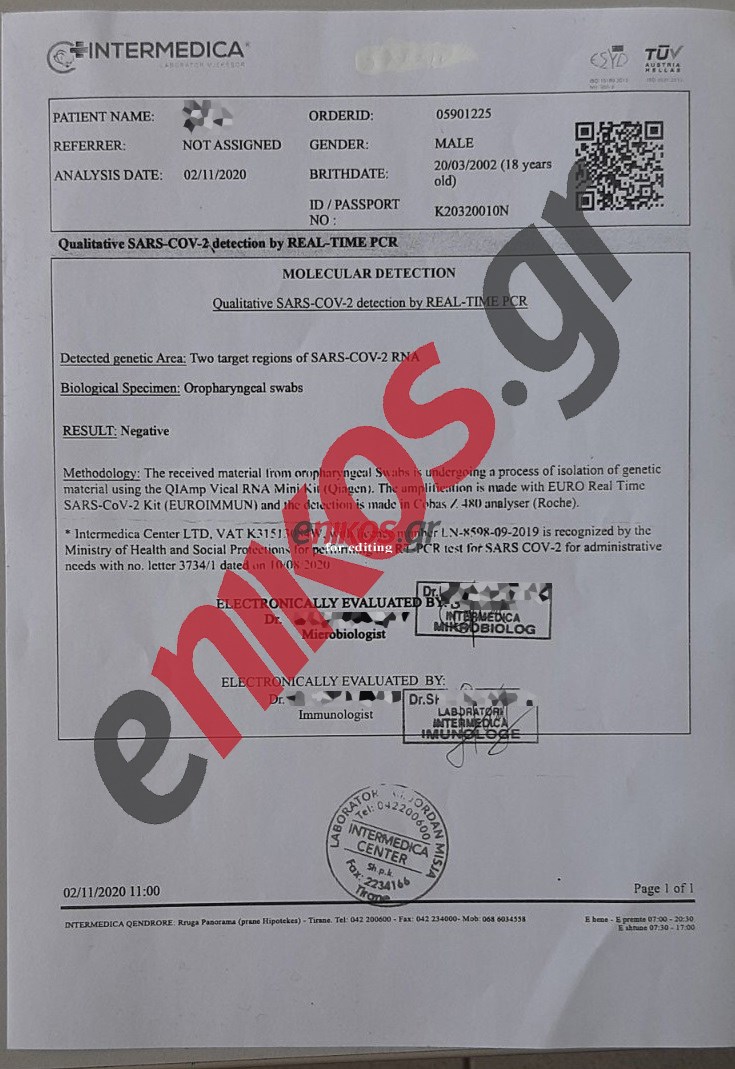 Επιτήδειοι βρήκαν τον τρόπο να κάνουν χρυσές δουλειές εν μέσω πανδημίας. Όπως αποκαλύφθηκε Αλβανοί αγόραζαν πλαστά πιστοποιητικά τεστ κορονοϊού και περνούσαν στην Ελλάδα από τη συνοριακή διέλευση της Κρυσταλλοπηγής.