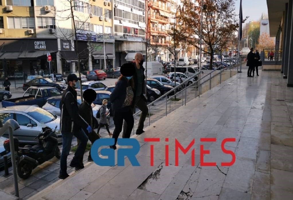 Οι δύο κατηγορούμενοι μεταφέρθηκαν στο Δικαστικό Μέγαρο από την κεντρική είσοδο φορώντας χειροπέδες, συνοδευόμενοι από άνδρες της Ασφάλειας Θεσσαλονίκης.