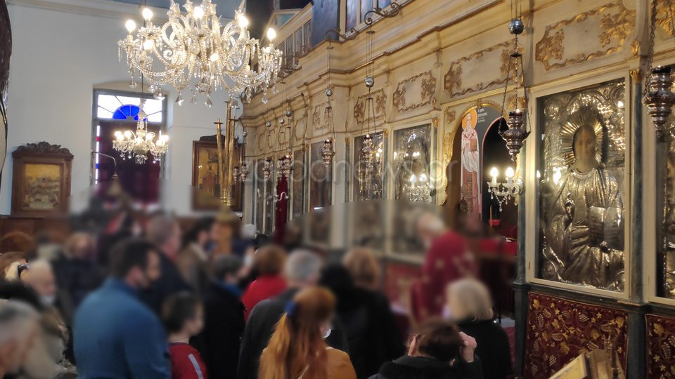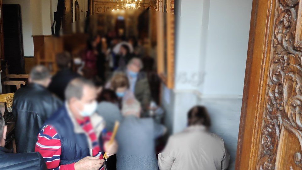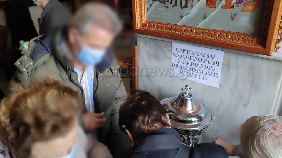 Εικόνες συνωστισμού παρατηρήθηκαν και στην Ιερά Μητρόπολη των Χανίων, αν και νωρίς το πρωί, κατά τη Θεία Λειτουργία, η προσέλευση των πιστών ήταν μικρή και χωρίς να παρατηρείται μαζικότητα. Λίγη ώρα όμως αργότερα, τα πράγματα άλλαξαν καθώς πιστοί που θέλησαν να παραλάβουν τον Αγιασμό άρχισαν να συνωστίζονται εντός του Ναού, με την τήρηση των μέτρων να πηγαίνει ουσιαστικά περίπατο. Όπως φαίνεται και στις φωτογραφίες του zarpanews.gr, ο κόσμος είναι αρκετός, χωρίς να κρατά αποστάσεις.