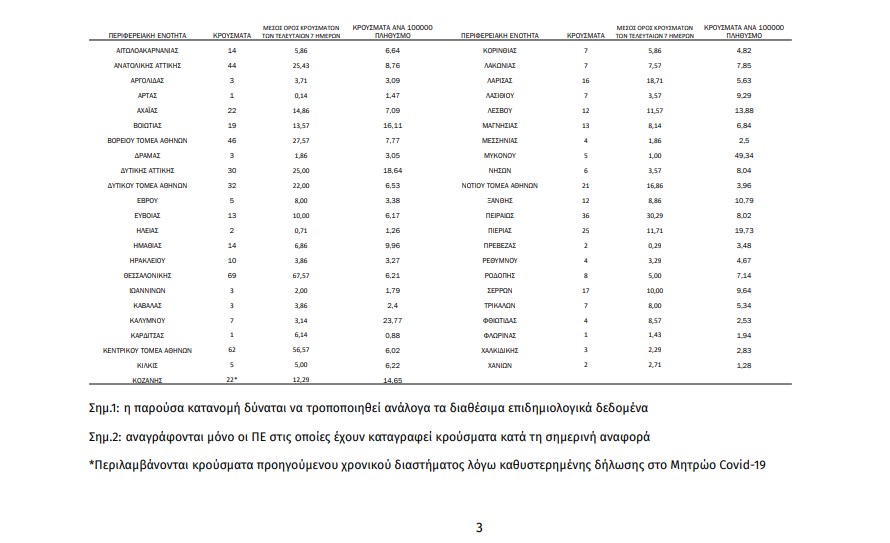 Η κατανομή των κρουσμάτων ανά Περιφερειακή Ενότητα: