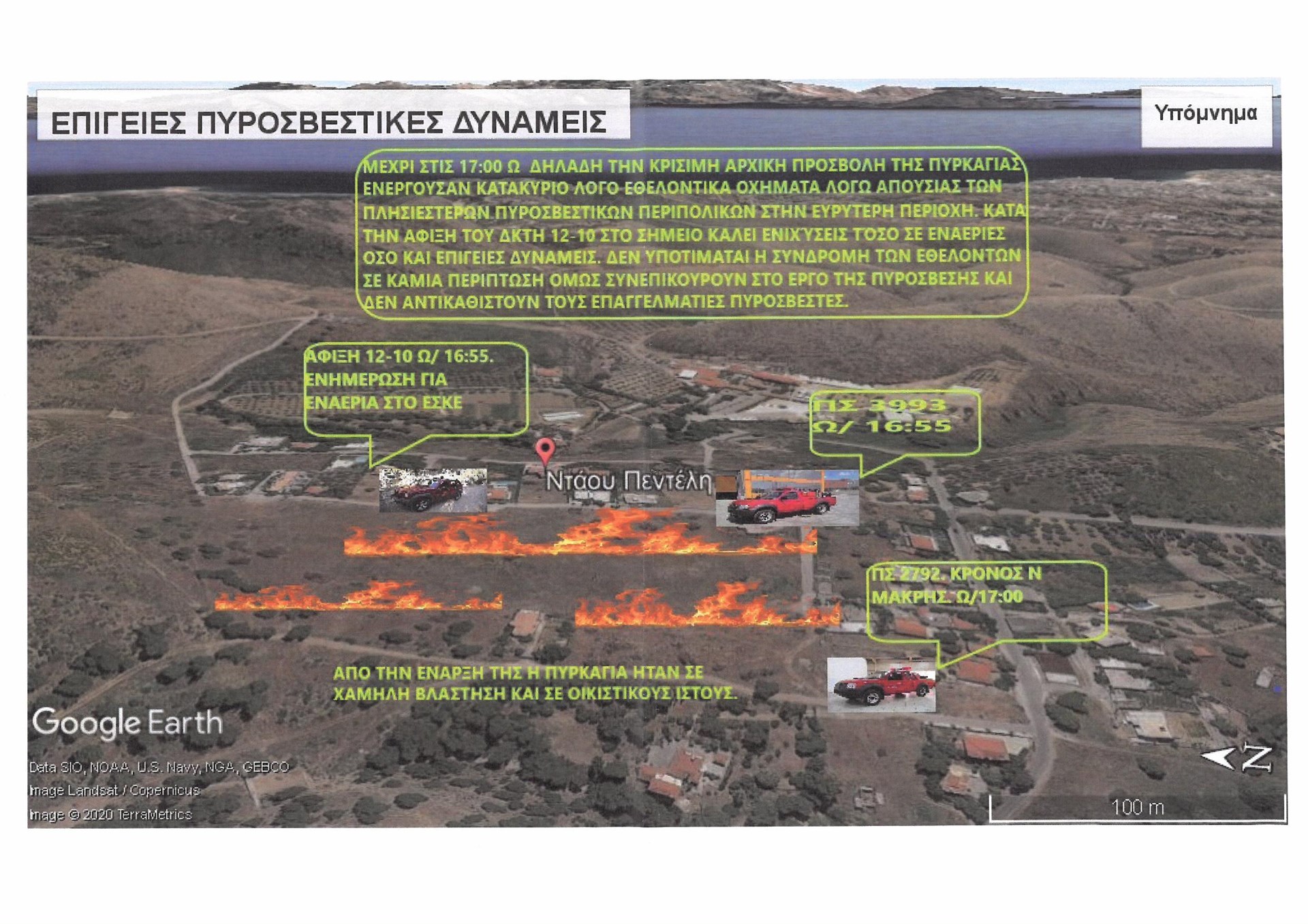 Σημειώνει δε ότι:«Προέκυψαν και στοιχεία που αφορούν την ενδεχόμενη τέλεση αδικημάτων προς συγκάλυψη των παραλείψεων και ενεργειών των αρμοδίων. Μεταξύ αυτών ψευδή ή πλαστογραφημένα στοιχεία που αναγράφονται στα ημερολόγιο του αεροδρομίου της Πάχης και της Υπηρεσίας Εναέριων Μέσων Πυροσβεστικού Σώματος.»Και καταλήγει ο δικαστικός λειτουργός πως: « Με τις ιδιότητές τους οι κατηγορούμενοι μπορούσαν να προβλέψουν το βαρύτερο αποτέλεσμα που τελικά επήλθε αποδεχόμενοι αυτό, καθώς δεν αξιοποίησαν έγκαιρα τα διαθέσιμα μέσα…. (…) Σε βάρος τους δεν προκύπτουν απλώς σοβαρές ενδείξεις για αμέλεια ως προς τα καθήκοντά τους , η οποία οδήγησε αιτιακά σε θανάτους και σωματικές βλάβες , αλλά σοβαρές ενδείξεις για ενδεχόμενο δόλο ως προς την πρόκληση του κινδύνου , ήτοι ενδεχόμενο δόλο για την τοποθέτηση των θυμάτων από ασφαλή σε μη ασφαλή θέση που τα κατέστησε αβοήθητα και μη δυνάμενα να διαφύγουν του κινδύνου καθώς και τον ενδεχόμενο δόλο για την άφεση των θυμάτων αβοήθητων».