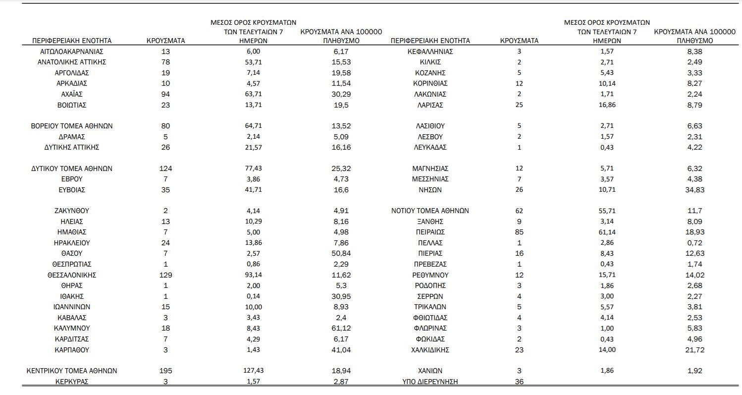 Ο ΕΟΔΥ ανακοίνωσε 1.327 νέα κρούσματα κορονοϊού το απόγευμα της Πέμπτης. Η Αττική εξακολουθεί να “φλέγεται”, καθώς περισσότερα από τα μισά κρούσματα εντοπίστηκαν στο λεκανοπέδιο, συγκεκριμένα 676. Ακολουθεί η Θεσσαλονίκη με 129 κρούσματα και η Αχαΐα με 94.