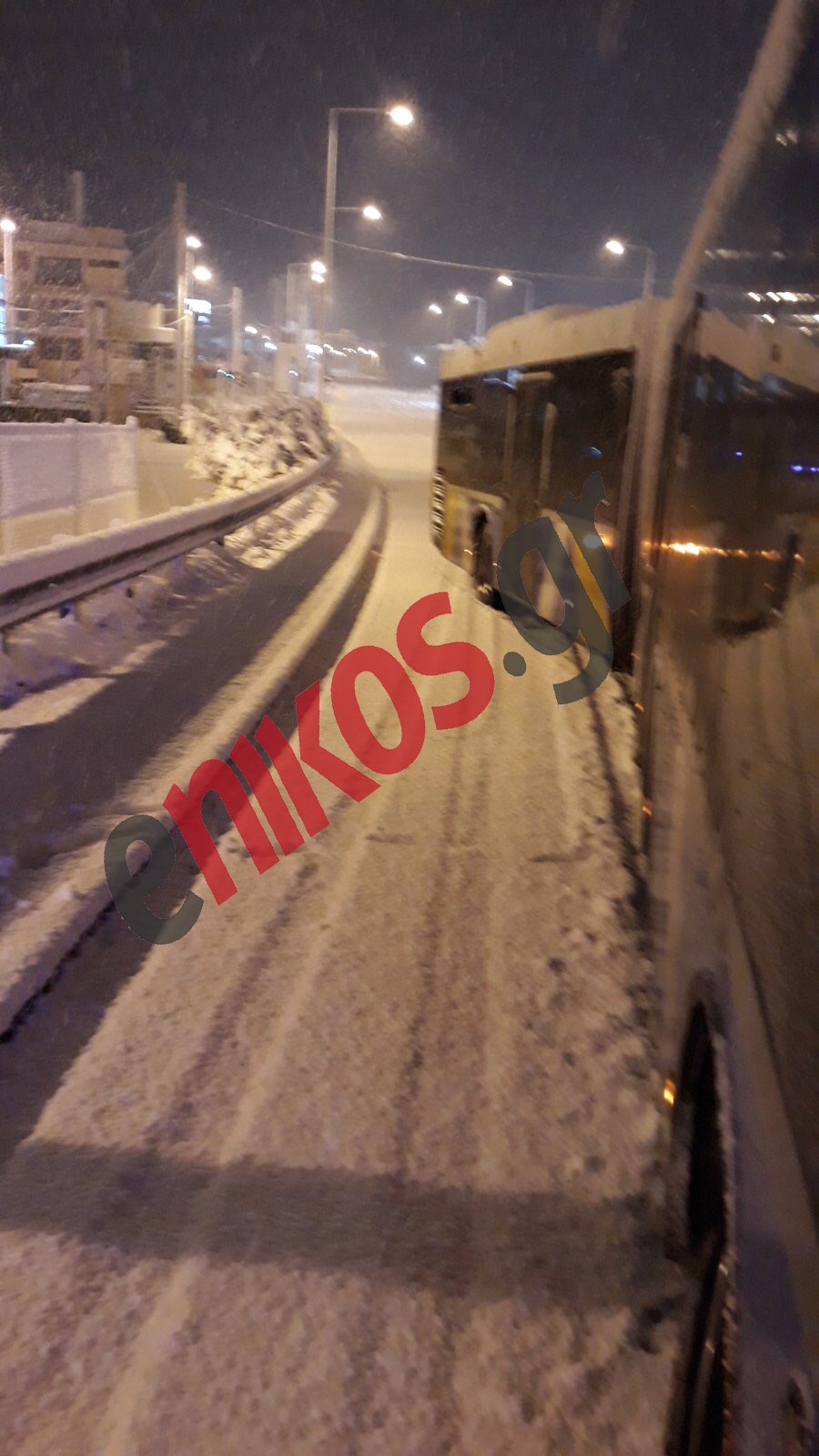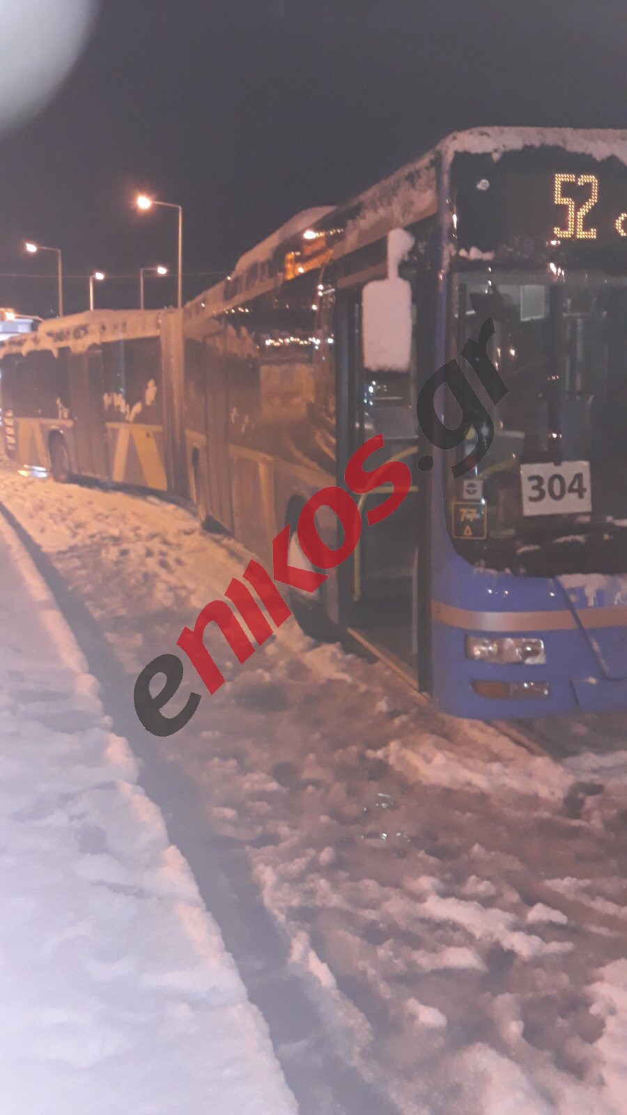 Εγκλωβισμένοι στη γέφυρα της Αττικής Οδού στη Λεωφόρο Σπάτων είναι δύο οδηγοί από τα ΚΤΕΛ Αττικής που με τα λεωφορεία 304 και 305 κάνουν το δρομολόγιο Λούτσα-Νομισματοκοπείο και λόγω του χιονιά τα οχήματα «κόλλησαν».