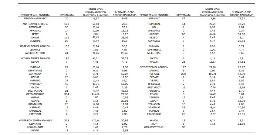 Αναλυτικά η γεωγραφική κατανομή των κρουσμάτων