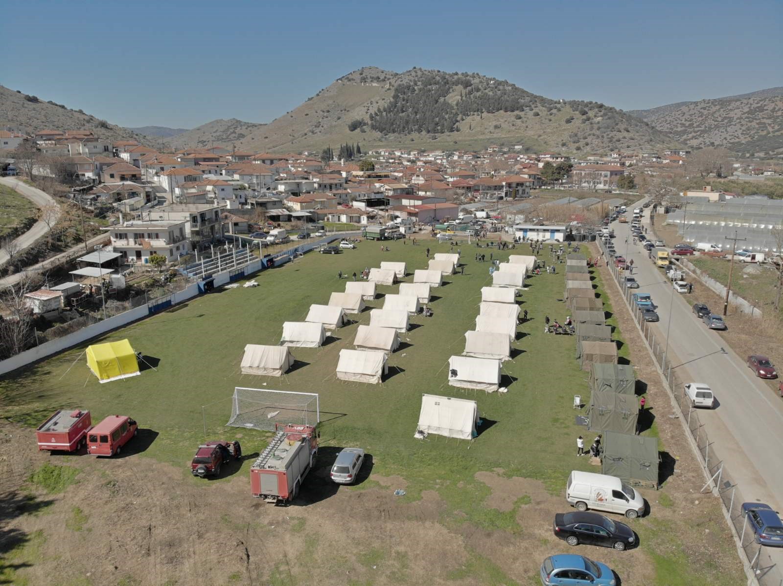 Το ΓΕΕΘΑ στο πλαίσιο της κοινωνικής του προσφοράς και της συνδρομής των Ενόπλων Δυνάμεων στον κρατικό μηχανισμό σε καταστάσεις έκτακτης ανάγκης, από την πρώτη στιγμή μετά τον σεισμό στην Ελασσόνα προώθησε με μέριμνα της 1ης Στρατιάς κλιμάκιο Διοικητικής Μέριμνας για την τοποθέτηση σκηνών και παροχή τροφίμων στις πληγείσες από τον σεισμό περιοχές.