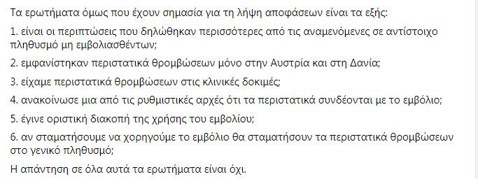 6. αν σταματήσουμε να χορηγούμε το εμβόλιο θα σταματήσουν τα περιστατικά θρομβώσεων στο γενικό πληθυσμό;