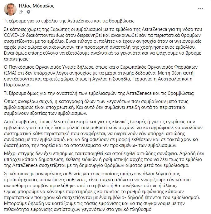 Αναλυτικά η ανάρτηση του Ηλία Μόσιαλου: