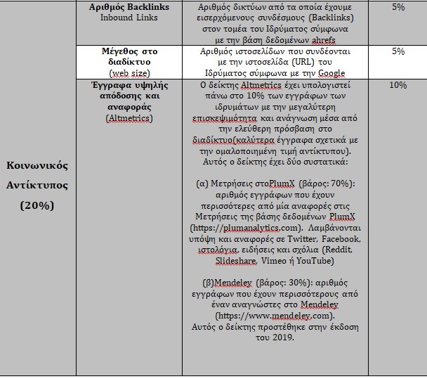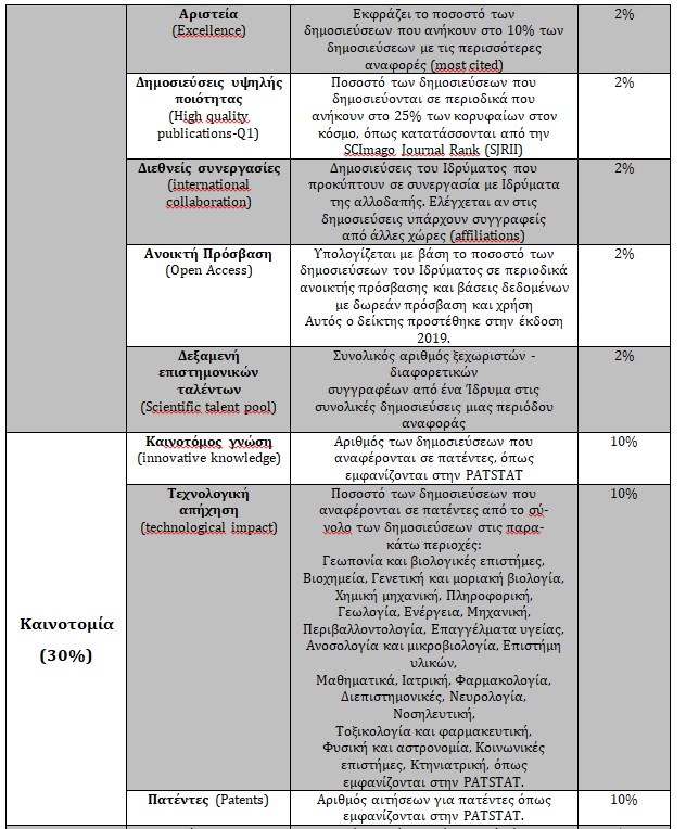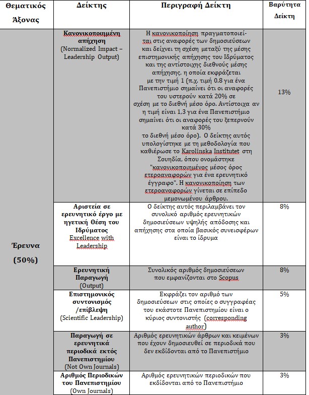 Μεθοδολογία και Δείκτες της Κατάταξης