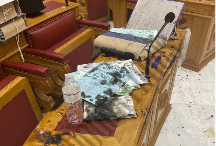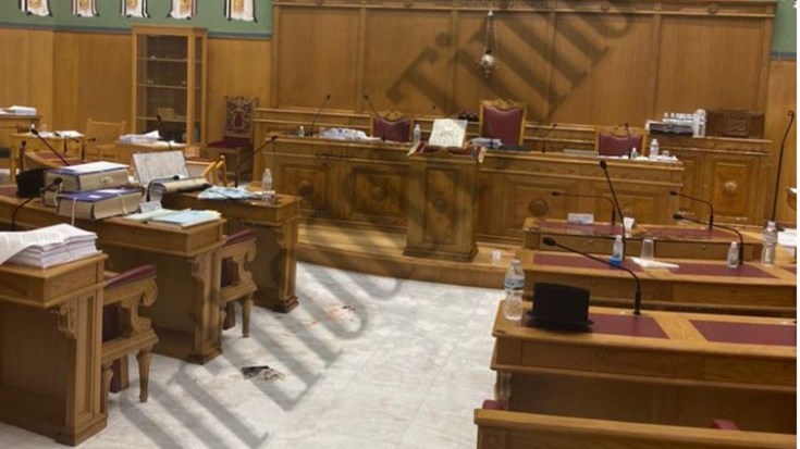 Νέες ΦΩΤΟ από την αίθουσα συνεδριάσεων μετά την επίθεση με βιτριόλι