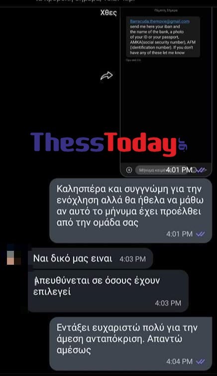 «Αναγκαζόμαστε για λόγους ασφαλείας να αλλάξουμε τη διαδικασία ανταλλαγής στοιχείων. Οι υποψήφιοι ηθοποιοί που έχουν επιλεγεί θα έρθουν τη Δευτέρα από το σημείο όπου θα γυριστεί η σκηνή και θα συμπληρώσουν σχετικό έγγραφο με τα στοιχεία που ζητήσαμε και στο SMS», δηλώνει στο ThessToday.gr πηγή από το τμήμα παραγωγής, υπογραμμίζοντας παράλληλα ότι ουδέποτε υπήρξε επίσημα καταγγελία για «δόλωμα» μέσω μηνυμάτων από το κινητό.