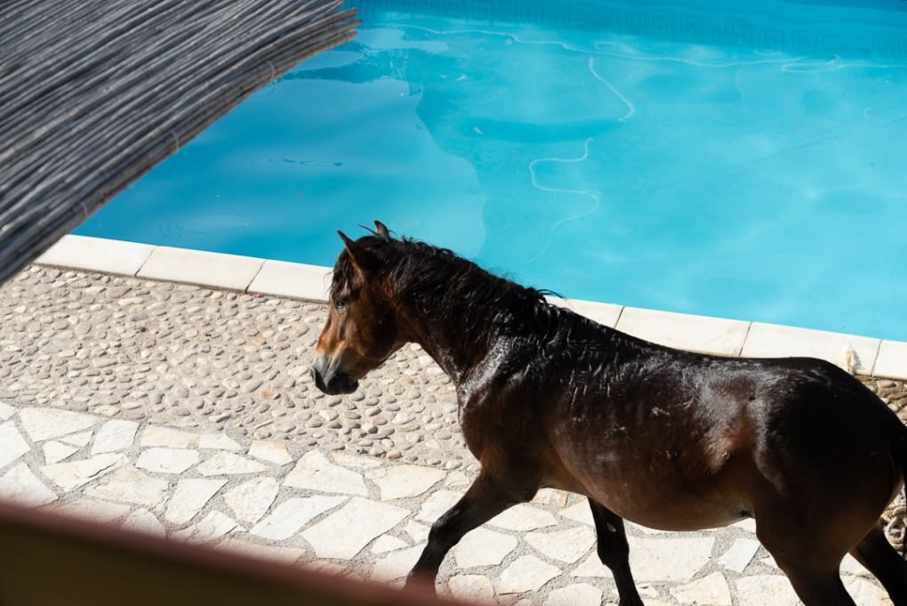 Βουτιά σε πισίνα βίλας στο χωριό Κατελειός της Κεφαλονιάς έκανε ένα άλογο, το πρωί της Κυριακής. Σύμφωνα με την τοπική ιστοσελίδα kefaloniapress.gr, το πανέμορφο άλογο του Αίνου, είτε λόγω των υψηλών θερμοκρασιών, είτε γιατί διψούσε, μπήκε μέσα στην πισίνα προκαλώντας αναστάτωση.