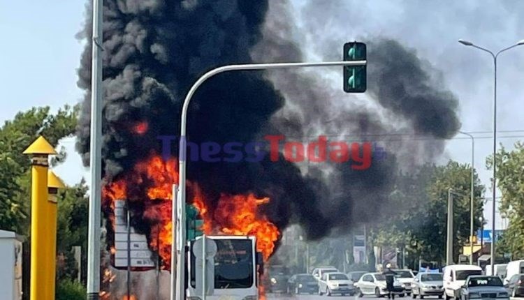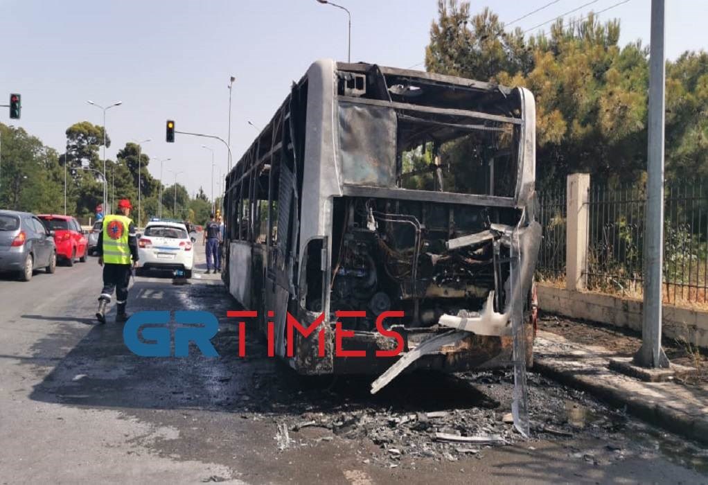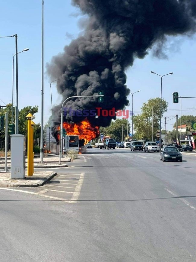 Σύμφωνα με αυτόπτες μάρτυρες, ο οδηγός του ΚΤΕΛ Σερρών που εκτελεί δρομολόγια του ΟΑΣΘ, σταμάτησε δεξιά μόλις αντιλήφθηκε ότι στο λεωφορείο έχει εκδηλωθεί φωτιά. Κατέβηκαν γρήγορα όλοι οι επιβάτες και εκείνος προσπάθησε στη συνέχεια να σβήσει τη φωτιά με πυροσβεστήρα, πράγμα που δεν ήταν εφικτό.