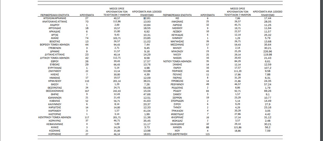 Η γεωγραφική κατανομή των νέων κρουσμάτων