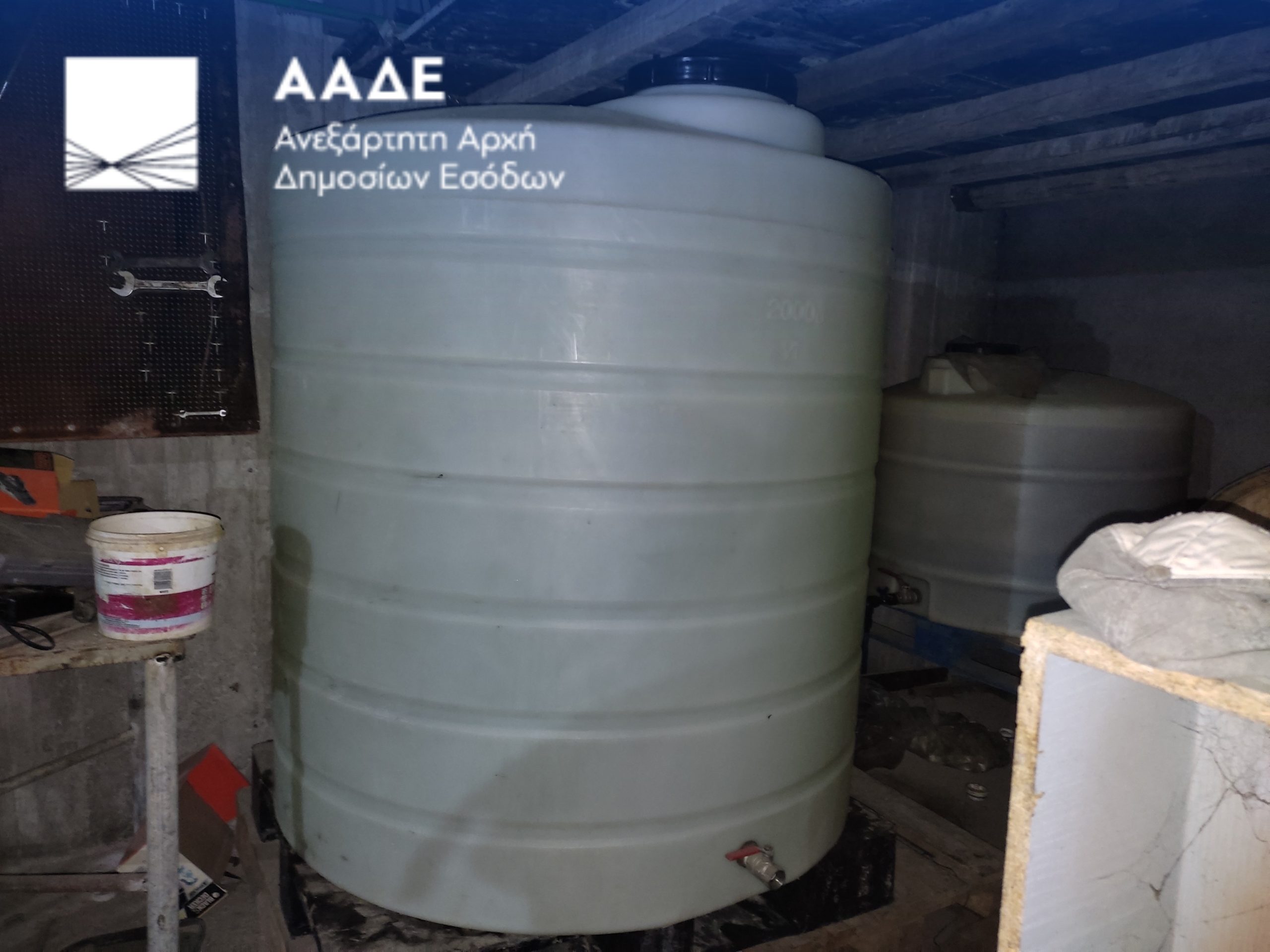 - ⦁ 16.654 λίτρα τσικουδιάς, σε γκαράζ, εντός πλαστικών δεξαμενών και βαρελιών, για τα οποία δεν επιδείχθηκαν αντίστοιχες άδειες απόσταξης ή άλλο παραστατικό, που να δικαιολογεί τη νόμιμη προέλευση, κατοχή και την προηγούμενη καταβολή των αναλογούντων σε αυτά δασμών κ.λ.π. φόρων.
