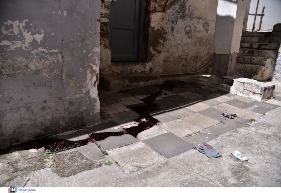 Όπως βλέπετε ο χώρος θυμίζει σκηνή από ταινία θρίλερ, με μια «λίμνη αίματος» στην αυλή του σπιτιού, και διάσπαρτα ματωμένα κομμάτια υφάσματος.
