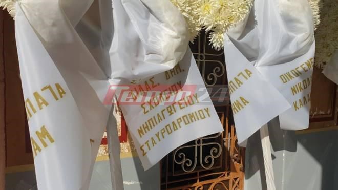 Στην κηδεία του 9χρονου στο Σκιαδά Τριταίας, όλοι λύγισαν μπροστά στη θλιβερή εικόνα του λευκού φέρετρου. Η κηδεία τελέστηκε μέσα σε κλίμα θλίψης και πόνου στον Ιερό Ναό Αγίου Ιωάννου Θεολόγου. Τραγικές φιγούρες οι γονείς του που δεν μπορούν να πιστέψουν πως το αγγελούδι τους έφυγε για πάντα από κοντά τους.
