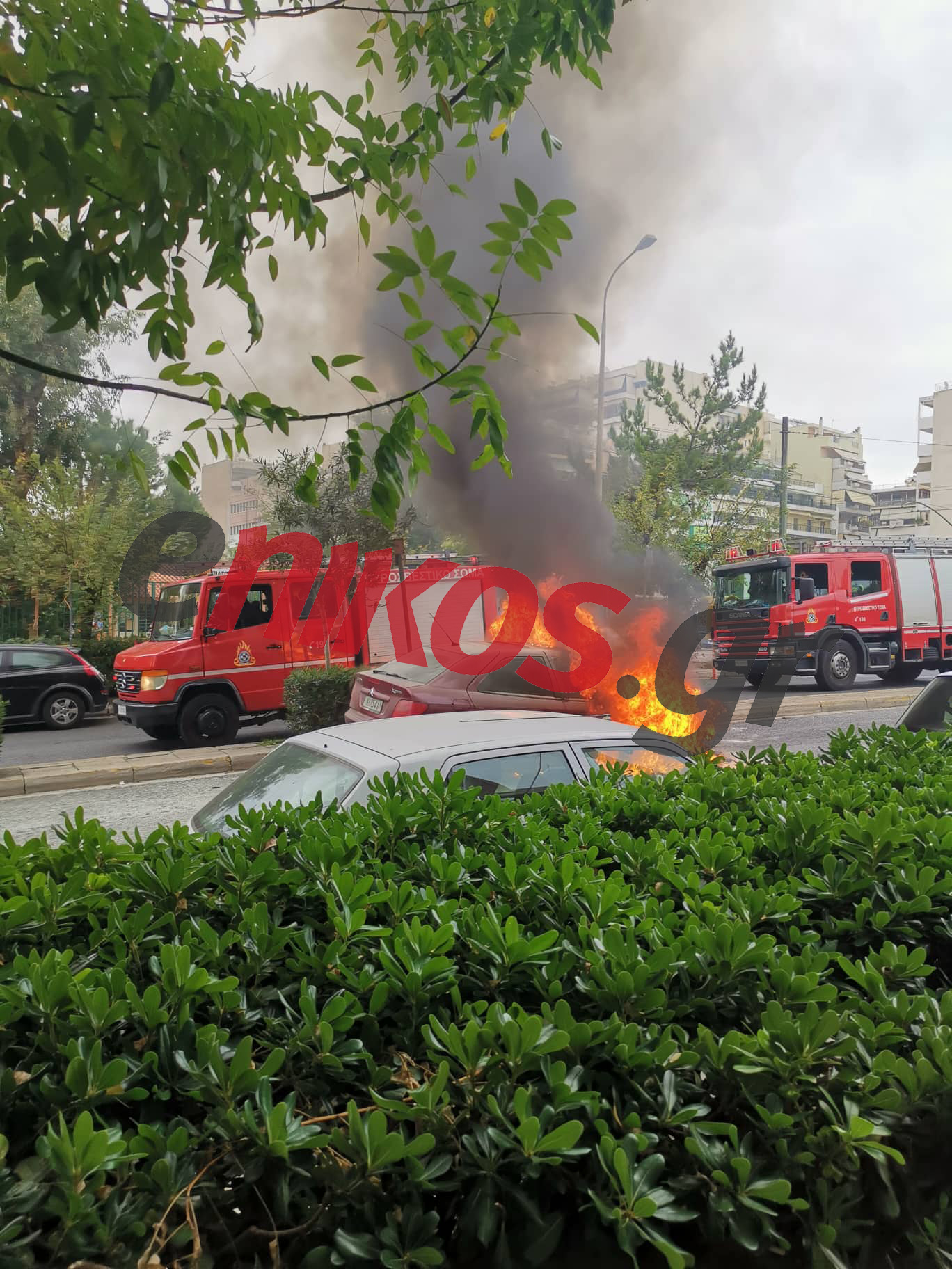 Στο σημείο έσπευσαν δύο οχήματα της πυροσβεστικής με έξι πυροσβέστες. Αυτόπτες μάρτυρες αναφέρουν ότι οδηγός του αυτοκινήτου, κατά τη διάρκεια της επιχείρησης κατάσβεσης, φώναζε “προσοχή έχει αέριο”.