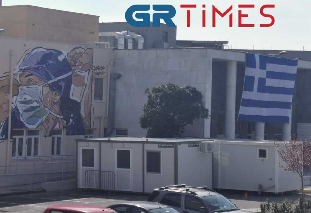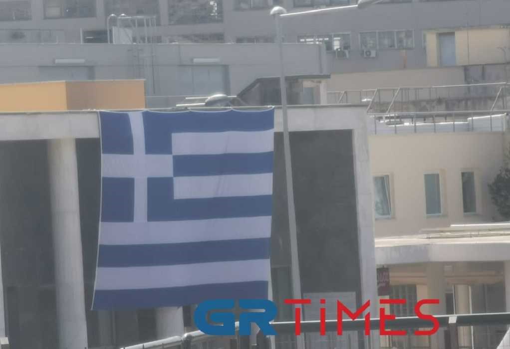 Μια μεγάλη ελληνική σημαία τοποθετήθηκε την Παρασκευή στο νοσοκομείο ΑΧΕΠΑ, ενόψει της 25ης Μαρτίου. Όπως μπορείτε να δείτε στις φωτογραφίες του GRTimes.gr, η γαλανόλευκη σημαία «γιγαντιαίων» διαστάσεων έχει τοποθετηθεί στην κυρία είσοδο του νοσοκομείου, δημιουργώντας έτσι ένα διαφορετικό κλίμα όσο πλησιάζουμε στη 200η επέτειο της Επανάστασης του 1821.
