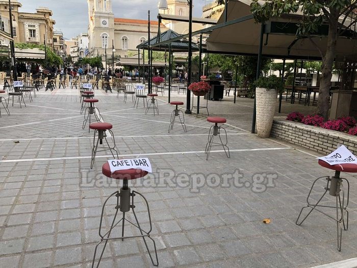 Στη διαμαρτυρία συμμετέχει και η Αγ. Παρασκευή στην πλατεία της οποίας, έχουν τοποθετηθεί τραπέζια και καρέκλες με τον τρόπο που πρέπει για να τηρούνται οι αποστάσεις ασφαλείας.