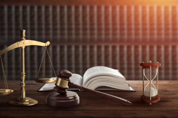 Judge's gavel and a book on a wooden table. Concept of law, justice, punishment, judge, corrupt court. copy space
