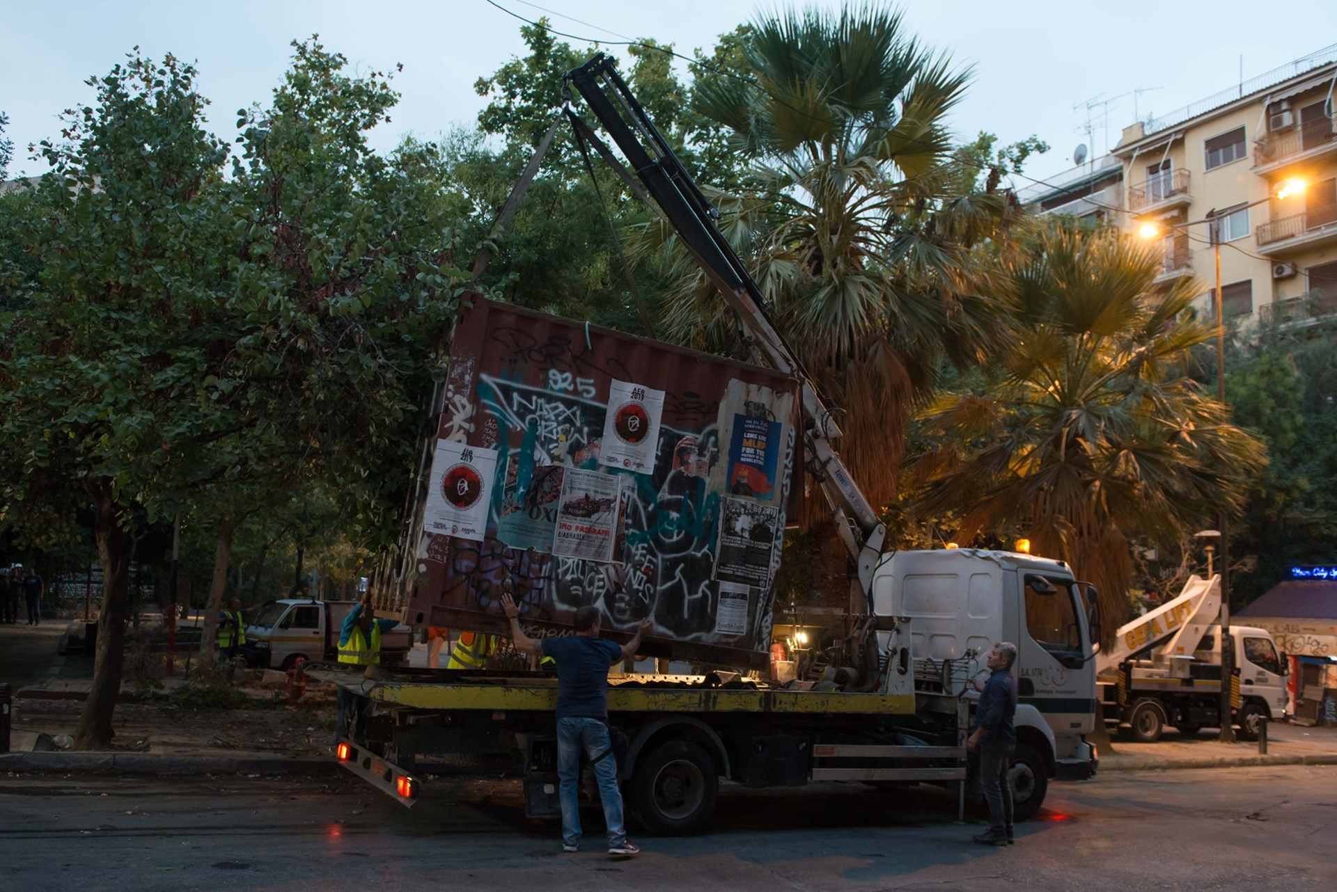 “Το μεταλλικό κοντέινερ που είχε τοποθετηθεί στην πλατεία Εξαρχείων τον Απρίλιο του 2017, αφαίρεσε το πρωί ο Δήμος Αθηναίων απελευθερώνοντας τον χώρο που παράνομα βρισκόταν υπό κατάληψη”, αναφέρεται σε ανακοίνωση που εξέδωσε ο Δήμος Αθηναίων.