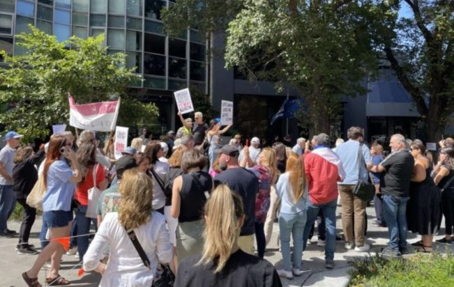 Αρκετές εκατοντάδες άτομα συγκεντρώθηκαν έξω από το ελληνικό προξενείο, στο κέντρο της Μελβούρνης, στην Αυστραλία, στα πλαίσια της συγκέντρωσης διαμαρτυρίας για την τραγωδία των Τεμπών.