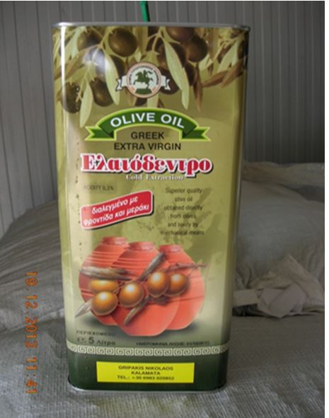 Α) Προϊόν με την εμπορική επωνυμία «ΕΛΑΙΟΔΕΝΤΡΟ», σε συσκευασία των 5 L και ημερομηνία λήξης 31-12-2015, το οποίο επιπλέον φέρει τις ενδείξεις «ΓΡΥΠΑΚΗΣ ΝΙΚΟΛΑΟΣ – ΚΑΛΑΜΑΤΑ».