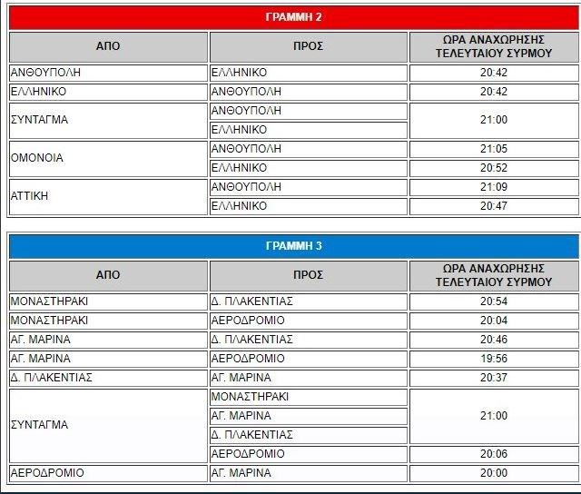 Έτσι τα τελευταία δρομολόγια πριν την έναρξη της στάσης εργασίας, διαμορφώνεται ως εξής: