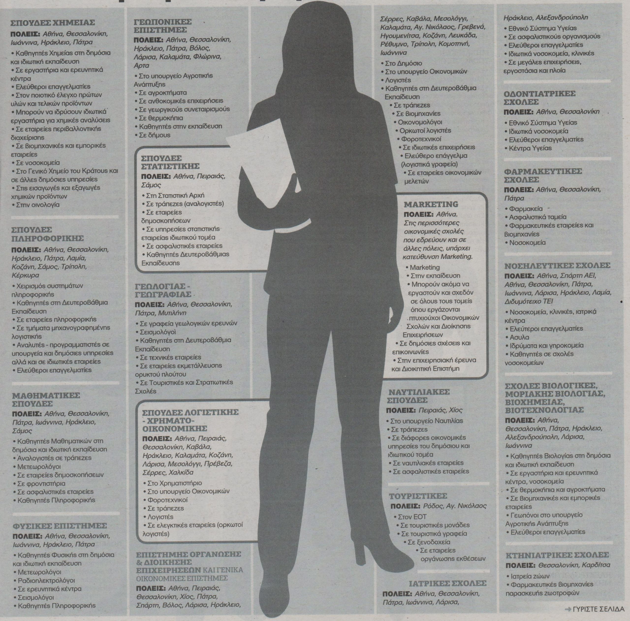 Οδηγό σχολών πανεπιστημίων και ΤΕΙ που προσφέρουν επαγγελματικές προοπτικές στους απόφοιτούς τους, ακόμα και σε διαδρομές που δεν περνούν αμέσως από το μυαλό των ενδιαφερόμενων.