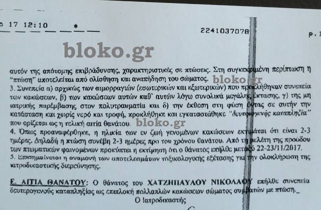 Η ιατροδικαστική έκθεση την οποία συνέταξε ο αρμόδιος ιατροδικαστής Ρόδου, για τις συνθήκες θανάτου του 21χρονου φοιτητή στην Κάλυμνο, δημοσιεύεται στο bloko.gr.