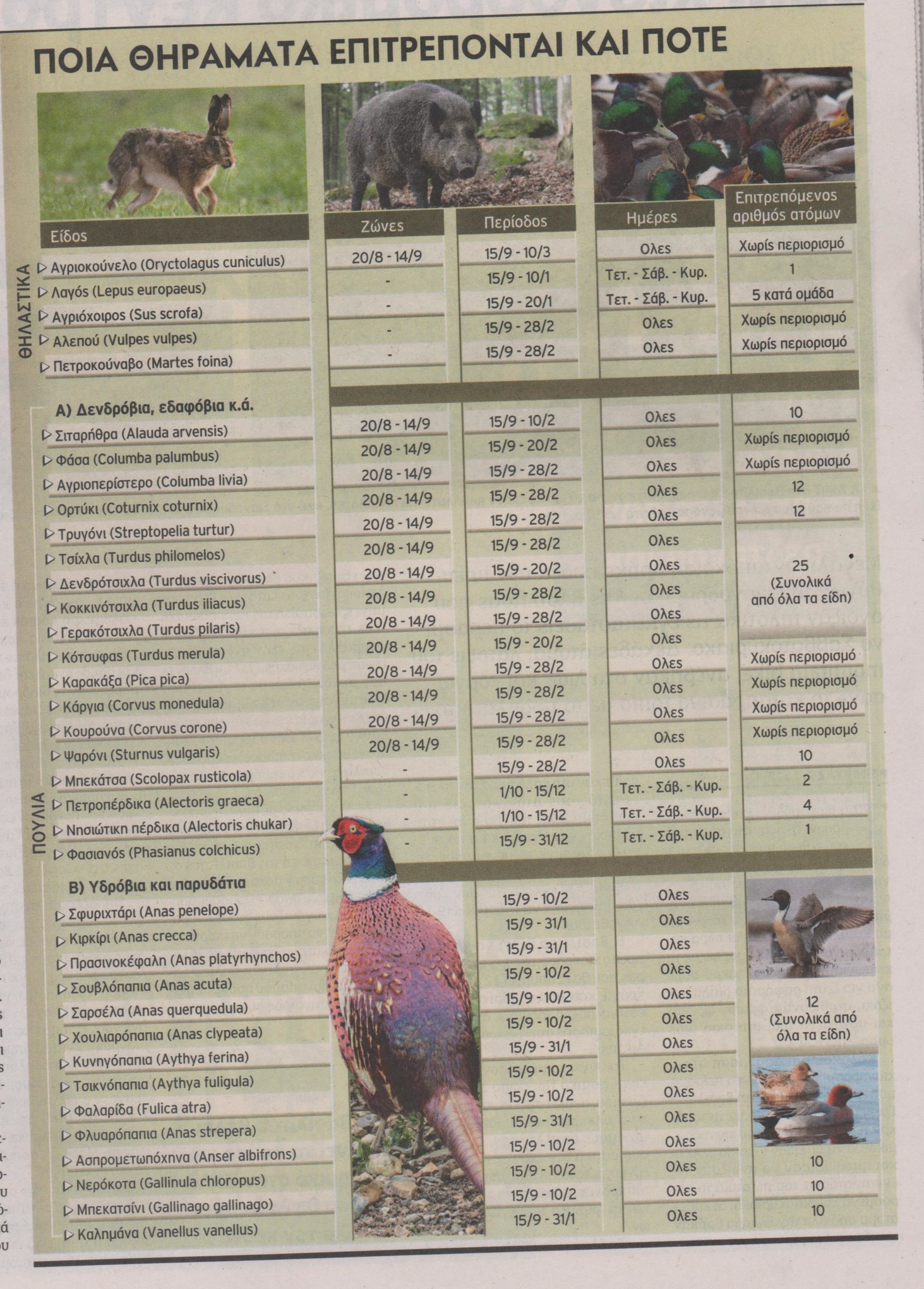 Να διευκρινίσουμε ότι οι νέες περιοχές στις οποίες θα επιτρέπεται το κυνήγι την εφετινή χρονιά είναι αυτή του Γαλαξιδίου, το όρος Φαλακρό στη Δράμα και το όρος Ζήρεια στην Κορινθία.