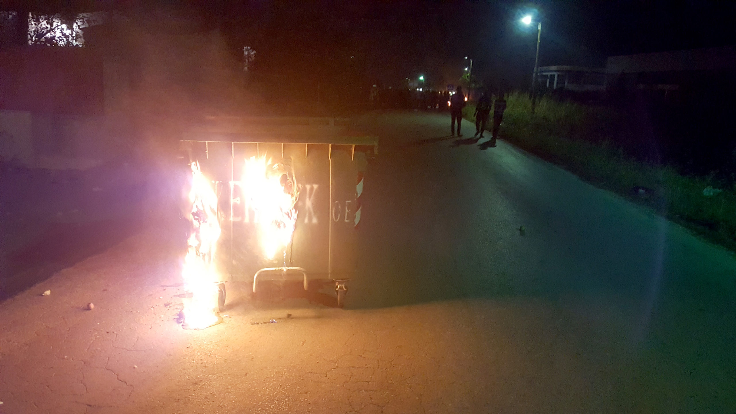 Μάλιστα οι πρόσφυγες έβαλαν φωτιά και σε κάδους απορριμμάτων, όπως φαίνεται και στη φωτογραφία.