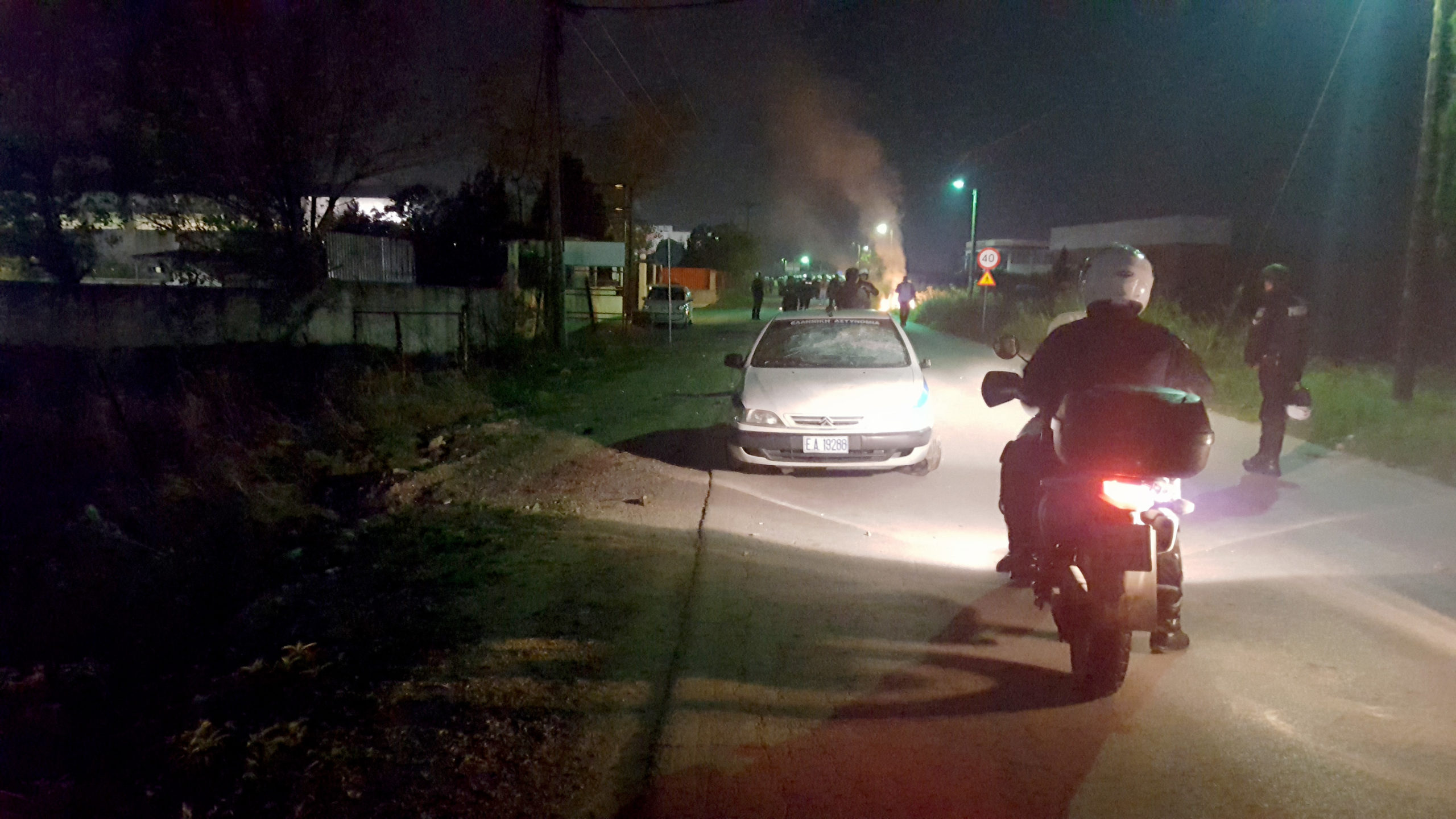 Από τα επεισόδια ένα περιπολικό υπέστη ζημιές στο σημείο όπου το αυτοκίνητο παρέσυρε τους τρεις πρόσφυγες έξω από τη δομή Φιλοξενίας στο Ωραιόκαστρο Θεσσαλονίκης.