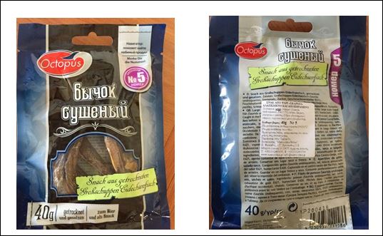 Σύμφωνα με σχετική ανακοίνωση, πρόκειται για το προϊόν με εμπορική ονομασία “Byschok” της γερμανικής εταιρείας “OCTOPUS GmbH”, σε συσκευασία των 40 γραμ. με ανάλωση κατά προτίμηση πριν από 20.04.18. Σε εξέλιξη βρίσκονται ήδη οι σχετικοί έλεγχοι από τον ΕΦΕΤ. Οι καταναλωτές, οι οποίοι έχουν προμηθευτεί το συγκεκριμένο προϊόν καλούνται από τον ΕΦΕΤ να μην το καταναλώσουν.