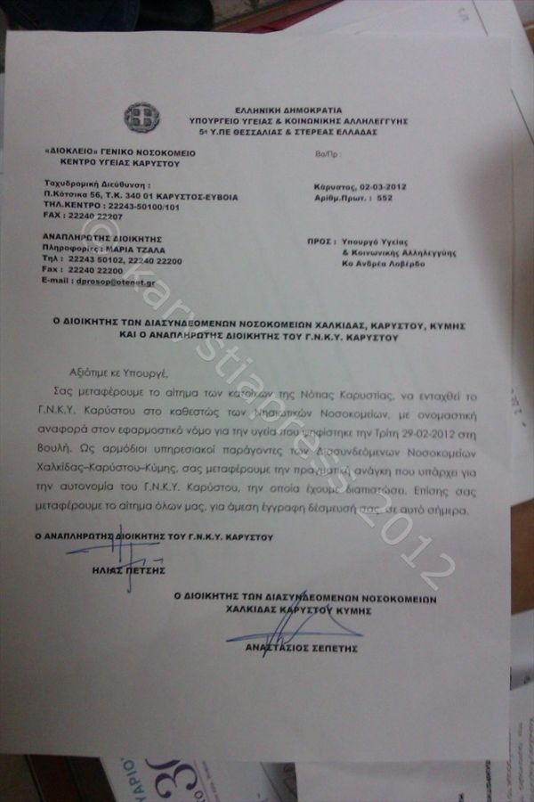 “Αυτό είναι το κείμενο που μας υπαγόρευσαν αυτοί που μας κρατούν όμηρους μέσα στο νοσοκομείο. Το υπογράψαμε υπο καθεστώς βίας.”ΔΕΙΤΕ ΤΟ: