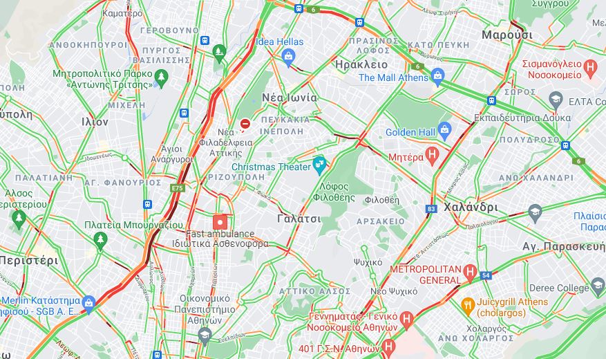 “Στο “κόκκινο” είναι από νωρίς το πρωί ο Κηφισός, με την κίνηση να είναι ιδιαίτερα αυξημένη κυρίως στο ρεύμα ανόδου. Μποτιλιάρισμα επικρατεί επίσης στη λεωφόρο Αθηνών (έξοδος), σε τμήματα της λεωφόρου Μεσογείων και στην κάθοδο της Κηφισίας.