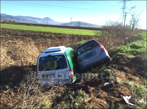 Τροχαίο ατύχημα σημειώθηκε το πρωί, στο δρόμο Λαμίας – Καρπενησίου και συγκεκριμένα στο ύψος της διασταύρωσης του Αμουρίου. Όπως αναφέρει το lamiareport.gr, τα δύο αυτοκίνητα κινούνταν προς την ίδια κατεύθυνση και ο οδηγός  του επαγγελτικού αυτοκινήτου επιχείρησε προσπέραση. Την ίδια στιγμή,  η οδηγός του άλλο οχήματος, για άγνωστο λόγο έστριψε αριστερά, με αποτέλεσμα να βρεθούν και τα δυο αυτοκίνητα εκτός δρόμου.
