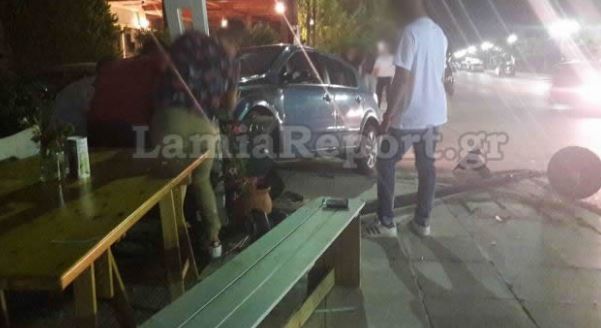 Το αυτοκίνητο έπεσε σε κολώνα φωτισμού και στη συνέχεια κατέληξε στην αυλή ενός μαγαζιού. Σύμφωνα με το lamiareport. gr δεν υπήρξε τραυματισμός από το περιστατικό.