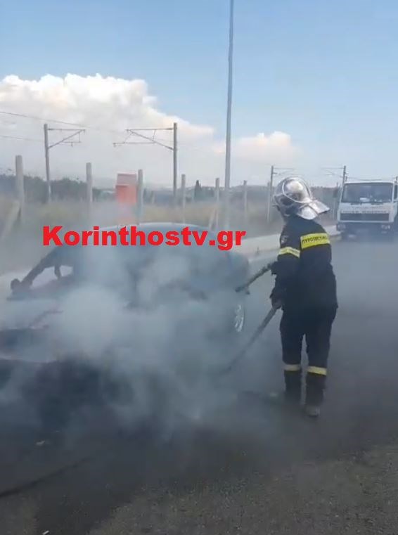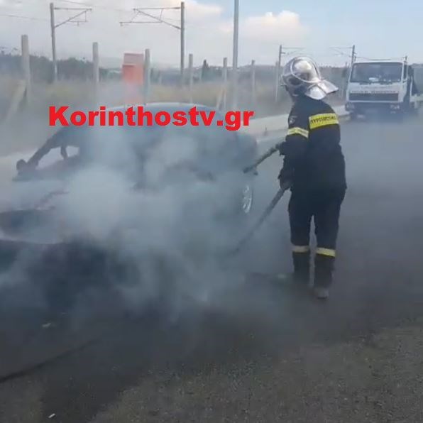 Αυτοκίνητο εν κινήσει πήρε φωτιά πριν από λίγα λεπτά στο 90 χλμ της Ν.Ε.Ο Κορίνθου – Πατρών στο ρεύμα κυκλοφορίας προς Πάτρα στο ύψος της Αρχαίας Κορίνθου.