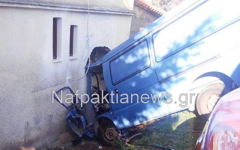 Σοβαρό τροχαίο ατύχημα σημειώθηκε σήμερα στην περιοχή Πιτσιναίικα στη Ναυπακτία, όταν φορτηγάκι εξετράπη της πορείας του και “καρφώθηκε” πάνω σε σπίτι. Από τη σφοδρότητα της σύγκρουσης άνοιξε τρύπα στον τοίχο.