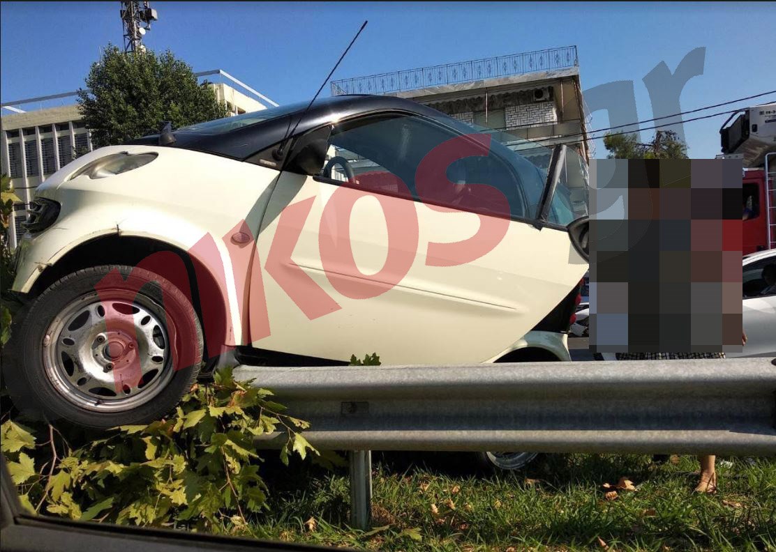 Όπως φαίνεται σε φωτογραφίες που έστειλε αναγνώστης του enikos.gr η οδηγός του μικρού οχήματος έχασε τον έλεγχο και κατέληξε στις μπαριέρες χωρίς ευτυχώς να περάσει στο αντίθετο ρεύμα.