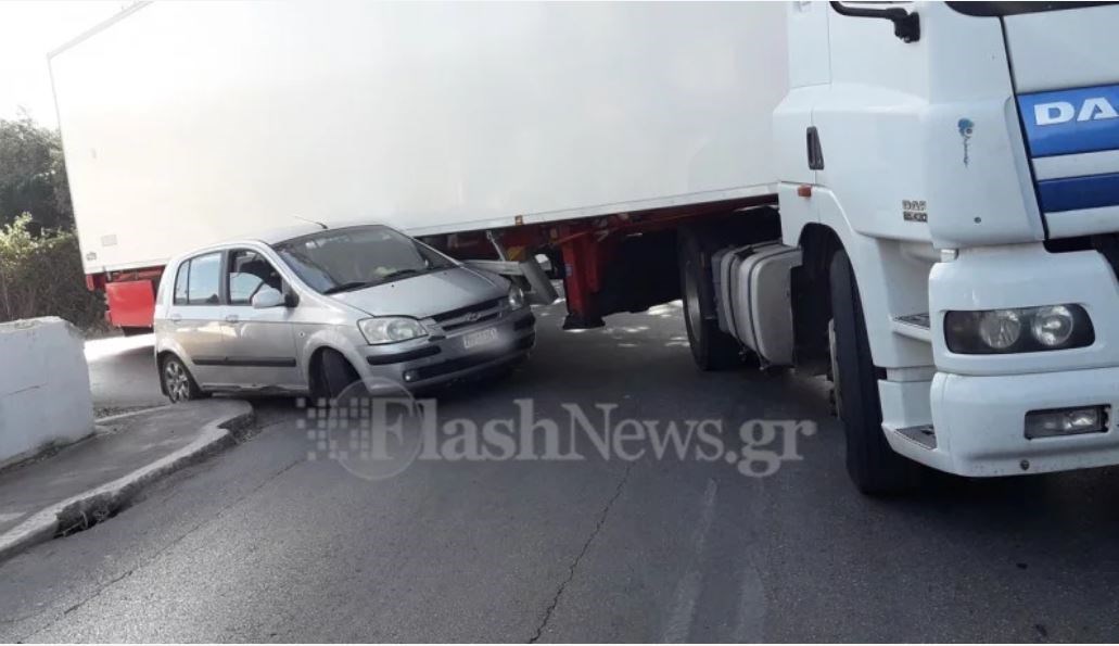 Αυτοκίνητο “σφηνώθηκε” κάτω από νταλίκα -ΦΩΤΟ – ΒΙΝΤΕΟ