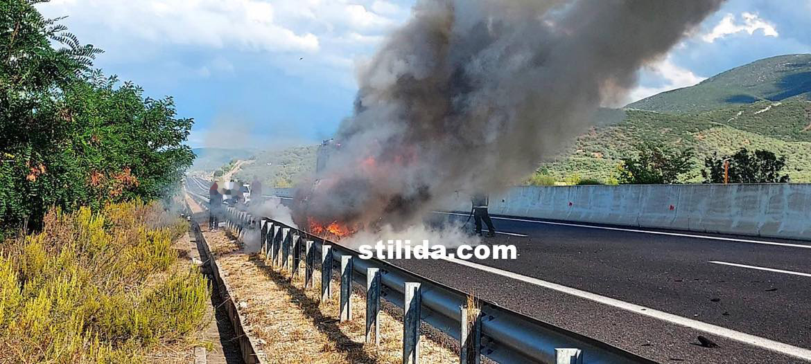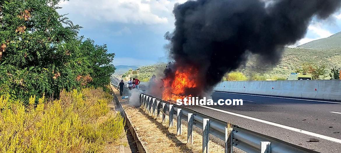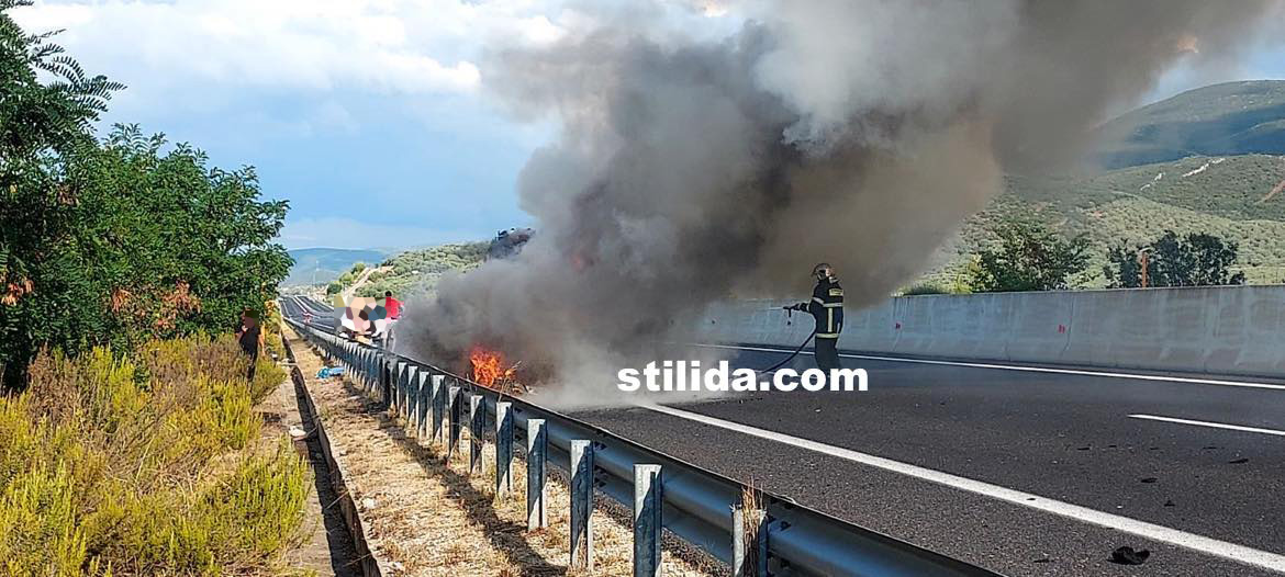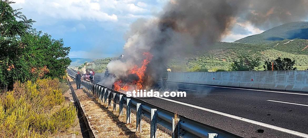Σύμφωνα με το stilida.com, περίπου στις 9.30 το πρωί στο 240 χλμ της Εθνικής Οδού στο ύψος των Ραχών, πολυτελές αυτοκίνητο τυλίχτηκε στις φλόγες. Ευτυχώς οι δύο επιβαίνοντες πρόλαβαν εγκαίρως να βγουν από το όχημα ενώ στο σημείο έσπευσε η Πυροσβεστική.
