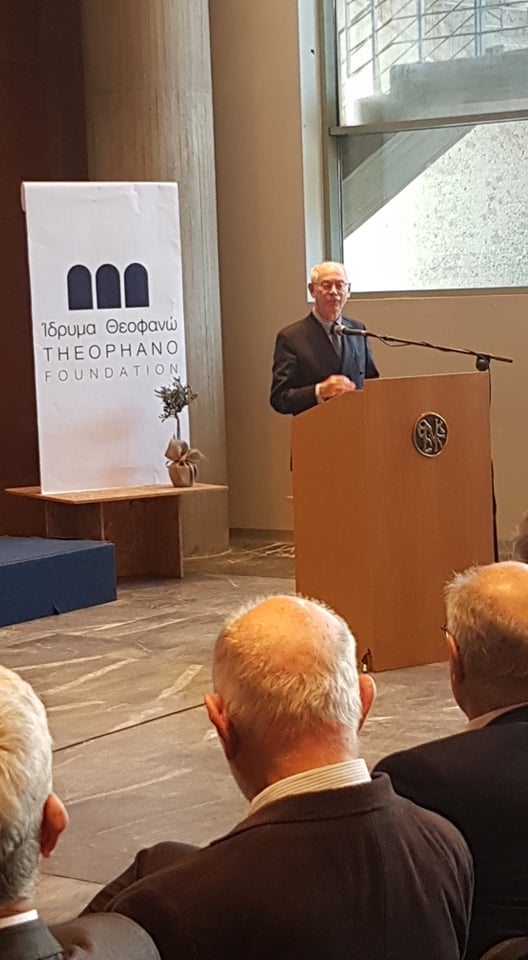 Παίρνοντας τον λόγο, ο Herman Van Rompuy, τ. Πρόεδρος του Ευρωπαϊκού Συμβουλίου και Πρόεδρος της Συμβουλευτικής Επιτροπής του Ιδρύματος Θεοφανώ, τόνισε πως το βραβείο είναι γεμάτο συμβολισμούς. Όπως επισήμανε, η αυτοκράτειρα Θεοφανώ, το όνομα της οποίας παίρνει το βραβείο, καταγόταν από τη Βυζαντινή αυτοκρατορία όμως βασίλευσε στη Δύση, γεννήθηκε στην Κωνσταντινούπολη αλλά πέθανε στα εδάφη της σημερινής Ολλανδίας συνδέοντας με την παρουσία της τη Δύση με την Ανατολή. Επίσης η ίδια ως γυναίκα που κυριαρχησε δυναμικά στην τότε πολιτική σκηνή αποτελεί σύμβολο ισότητας μεταξύ των δύο φύλων.