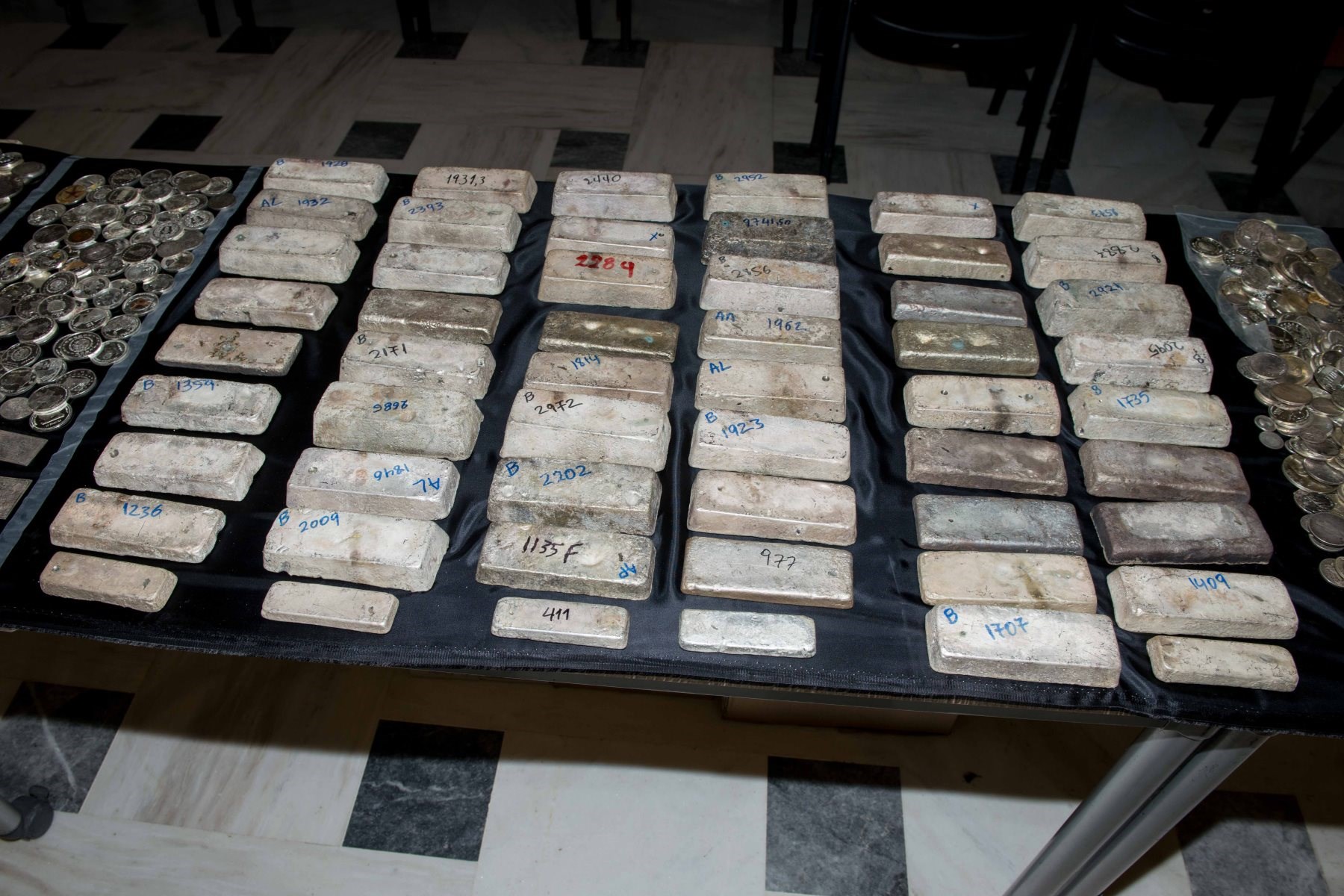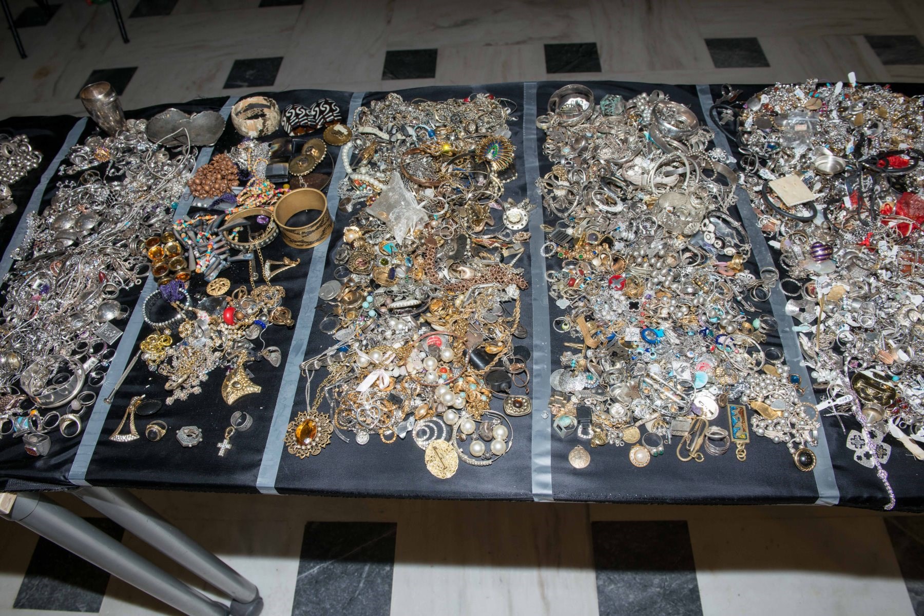 Οι αστυνομικοί στα δύο διαμερίσματα του Χαλανδρίου βρήκαν 700 κιλά κοσμήματα, 100.000 ευρώ σε μετρητά καθώς και ποσότητα διαμαντιών μεγάλης αξίας. «Αποθηκάριος» του θησαυρού ήταν ο ενεχυροδανειστής της συμμορίας και η σύζυγός του, οι οποίοι ξέπλεναν τα κλοπιμαία σε ενεχυροδανειστήρια σε Καλλιθέα, στο Φάληρο και στο Μενίδι.